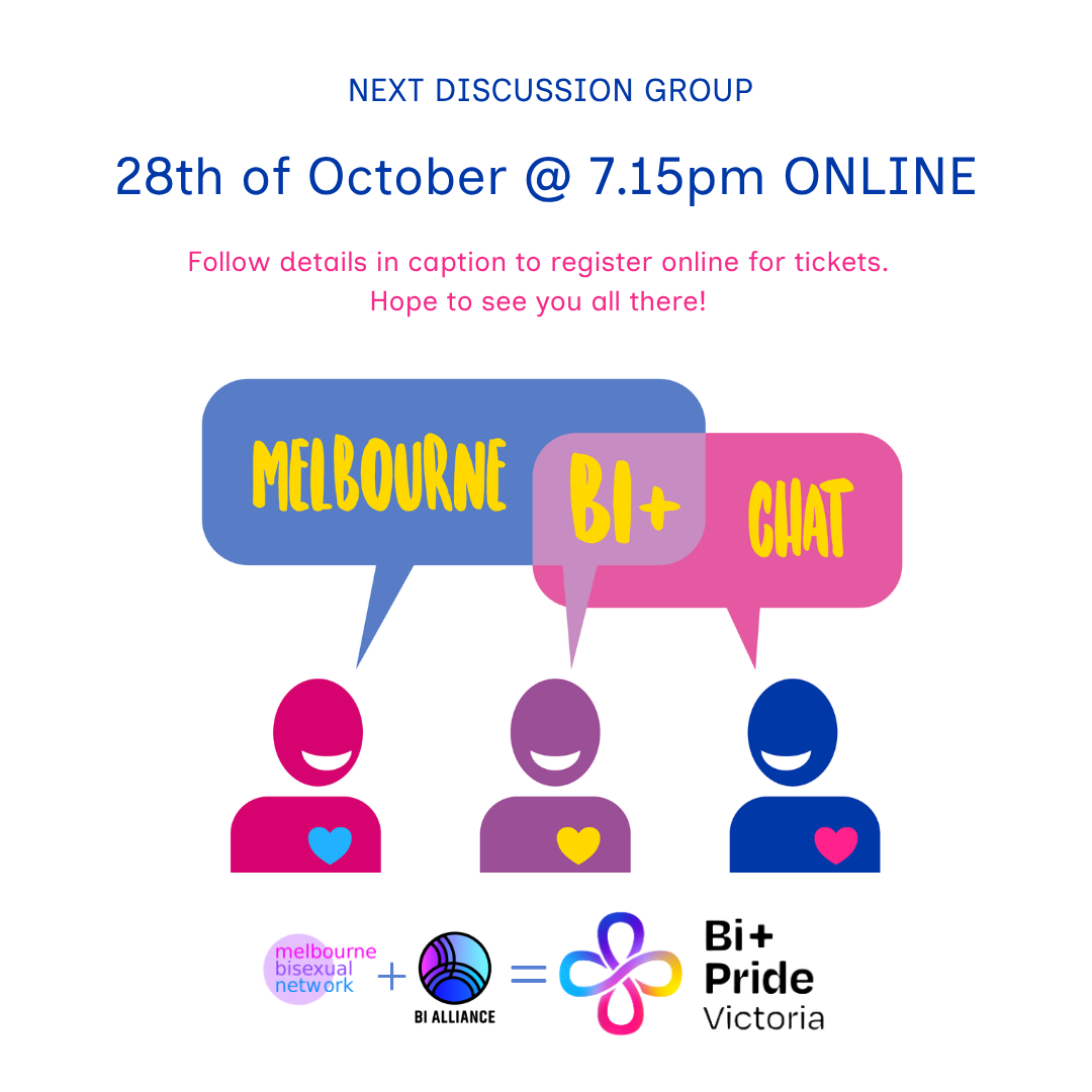 Now in its 21st year, the Melbourne Bi+ Discussion Group is an online, peer-led facilitated safe space for bi, pan, and other multi-gender attracted folks.
